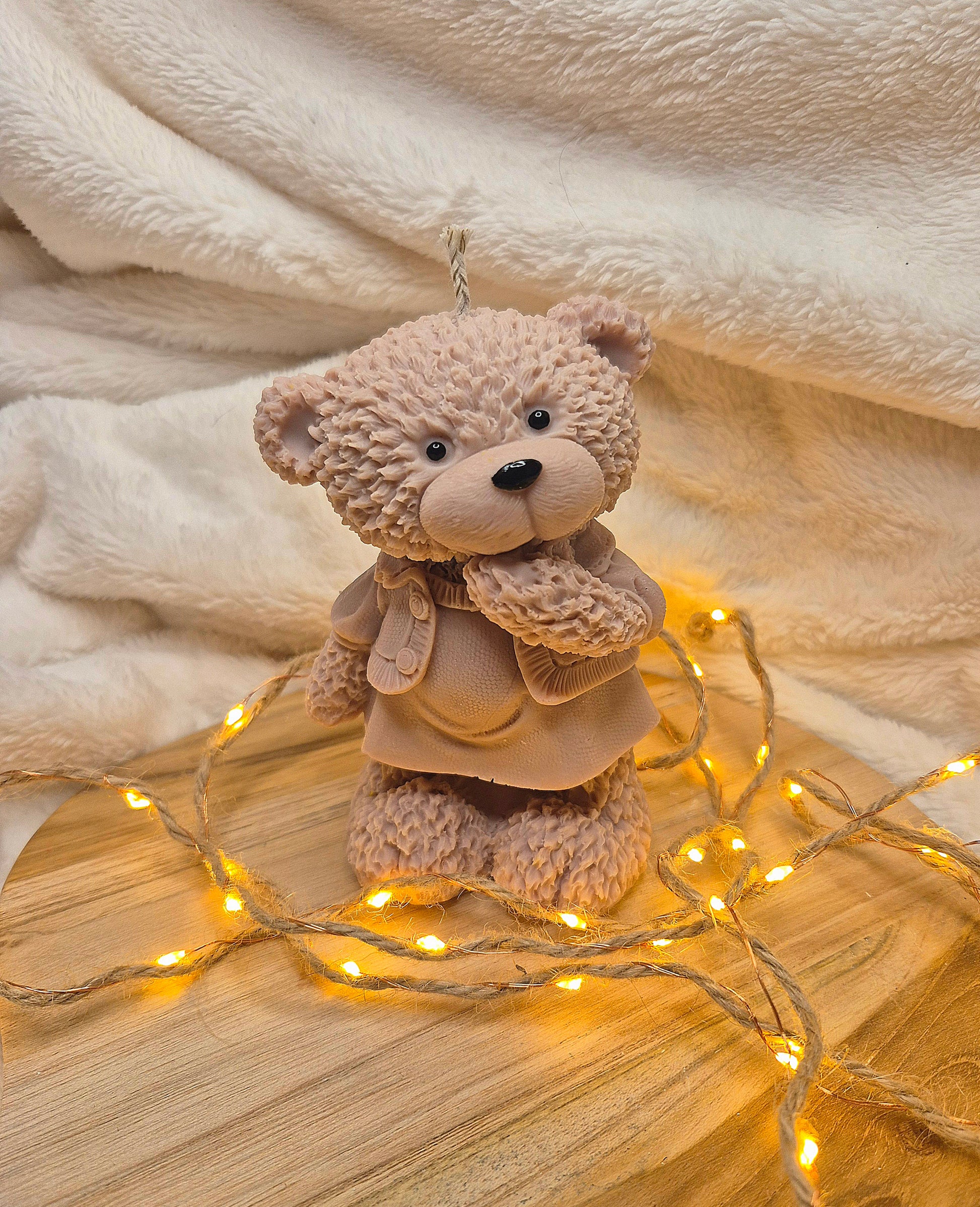 Der süße kleine Bär mit seinen feinen Details ist nicht nur eine Kerze, sondern ein Stück Herzwärme – perfekt für gemütliche Wintertage oder als liebevolles Geschenk für große und kleine Träumer.