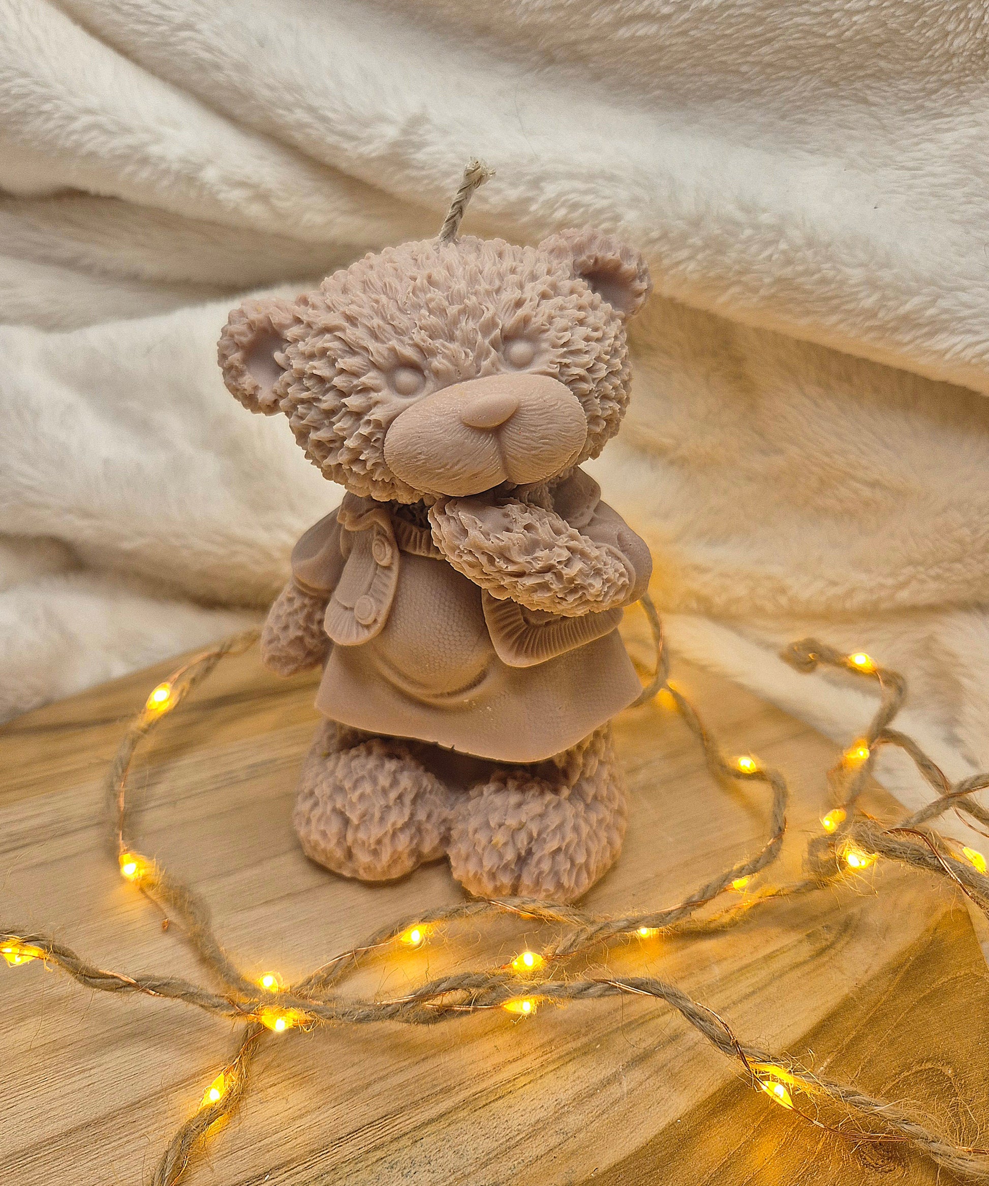 • 🧸 Handgegossene Kerze in Form eines detailreichen Bären