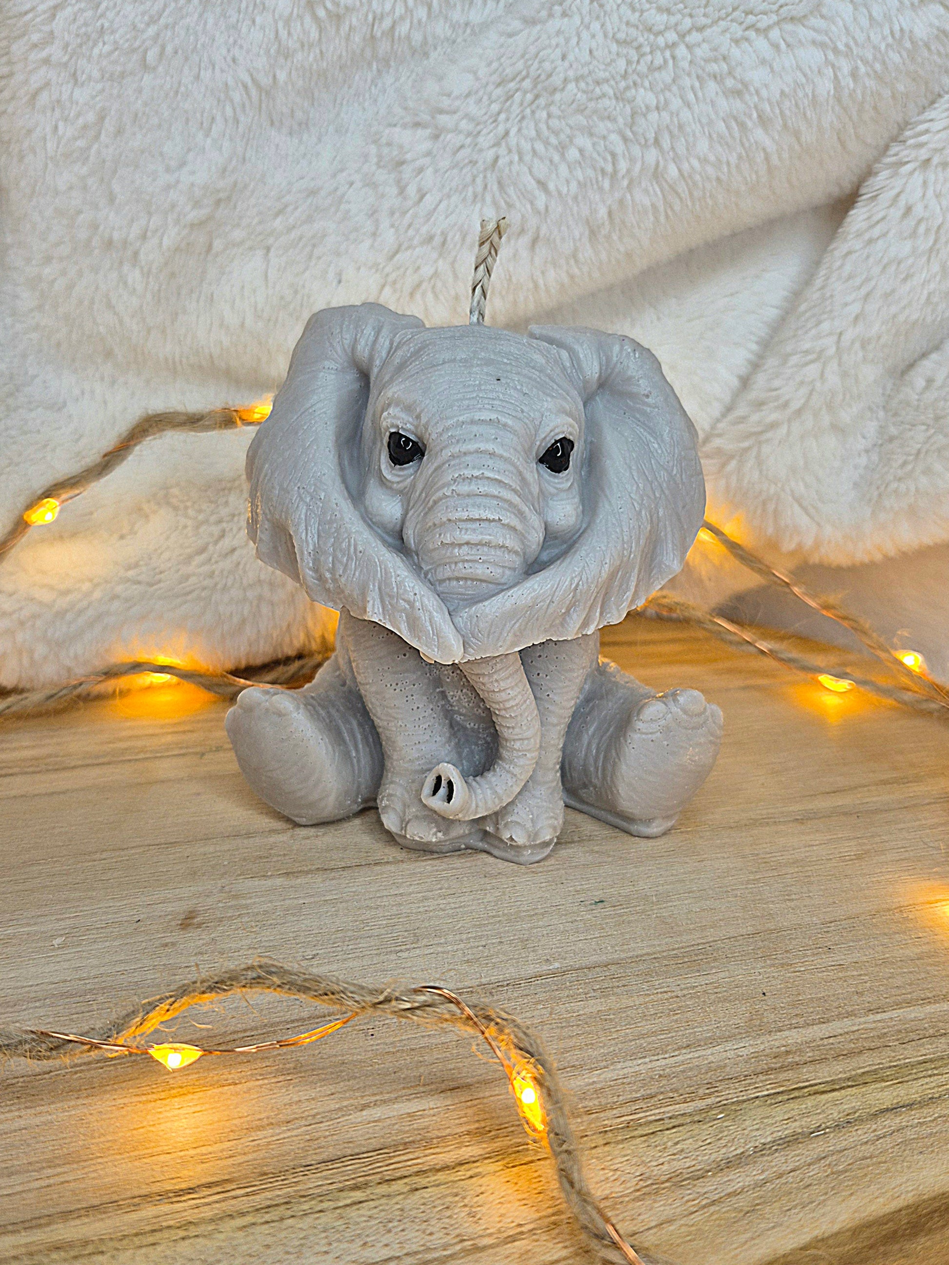 • 🐘 Handgefertigte Elefanten-Kerze mit Herzohren