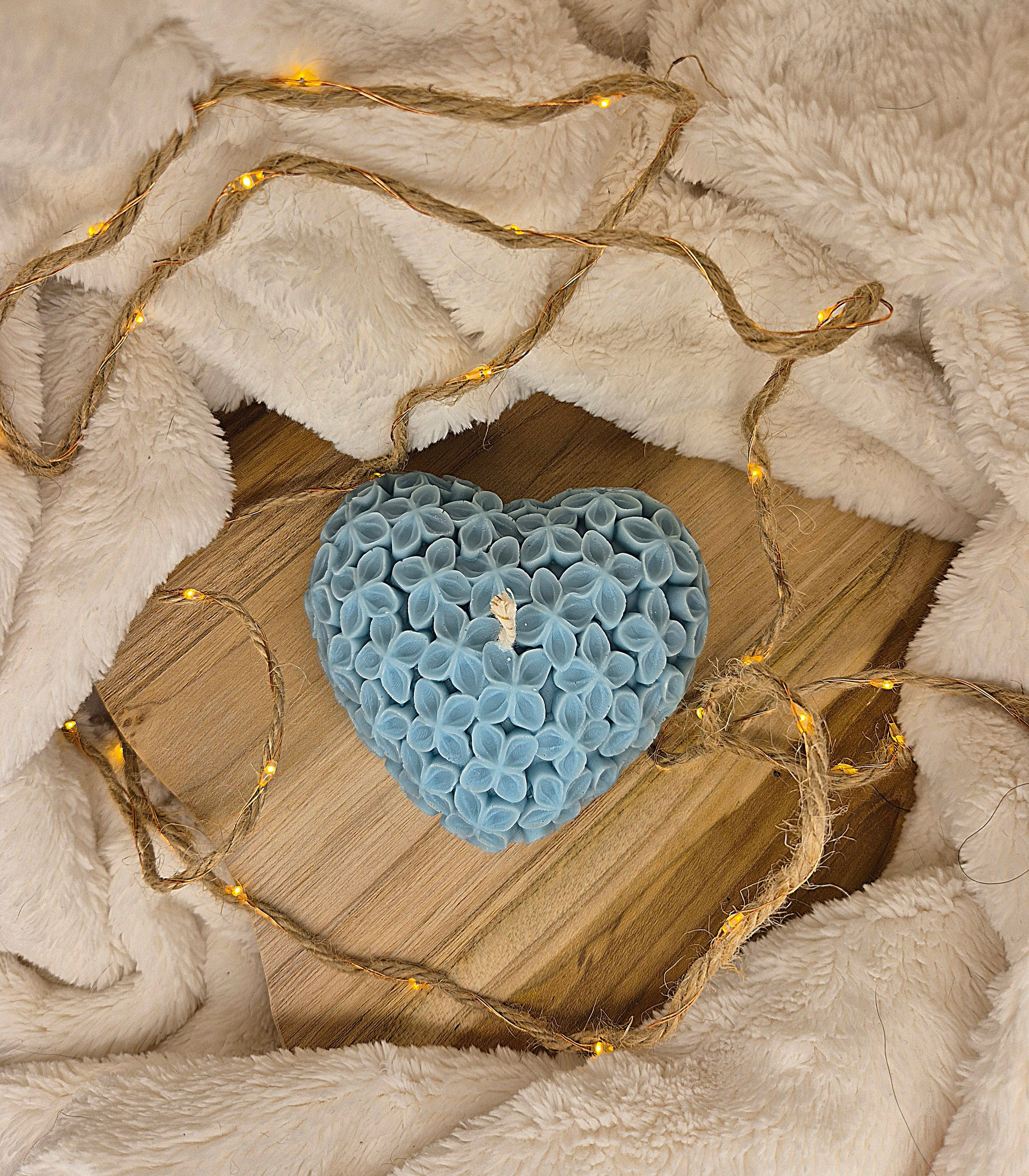 Die Kerze „Blütenherz“ ist ein wahres Kunstwerk aus zahllosen kleinen Blüten, die zu einem harmonischen Herz geformt sind. Ideal als liebevolle Geschenkidee, für romantische Abende oder als zarte Dekoration mit Symbolkraft.