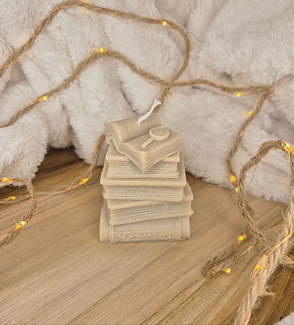 Die Kerze „Lesefieber“ vereint das Gefühl von Neugier und Entdeckerfreude – mit einem kunstvoll gestalteten Bücherstapel, gekrönt von einem offenen Buch und einer kleinen Lupe. Ob als Geschenk für Buchliebhaber*innen oder dekorativer Hingucker im Regal: Diese Kerze ist ein echtes Statement für alle, die Geschichten lieben.