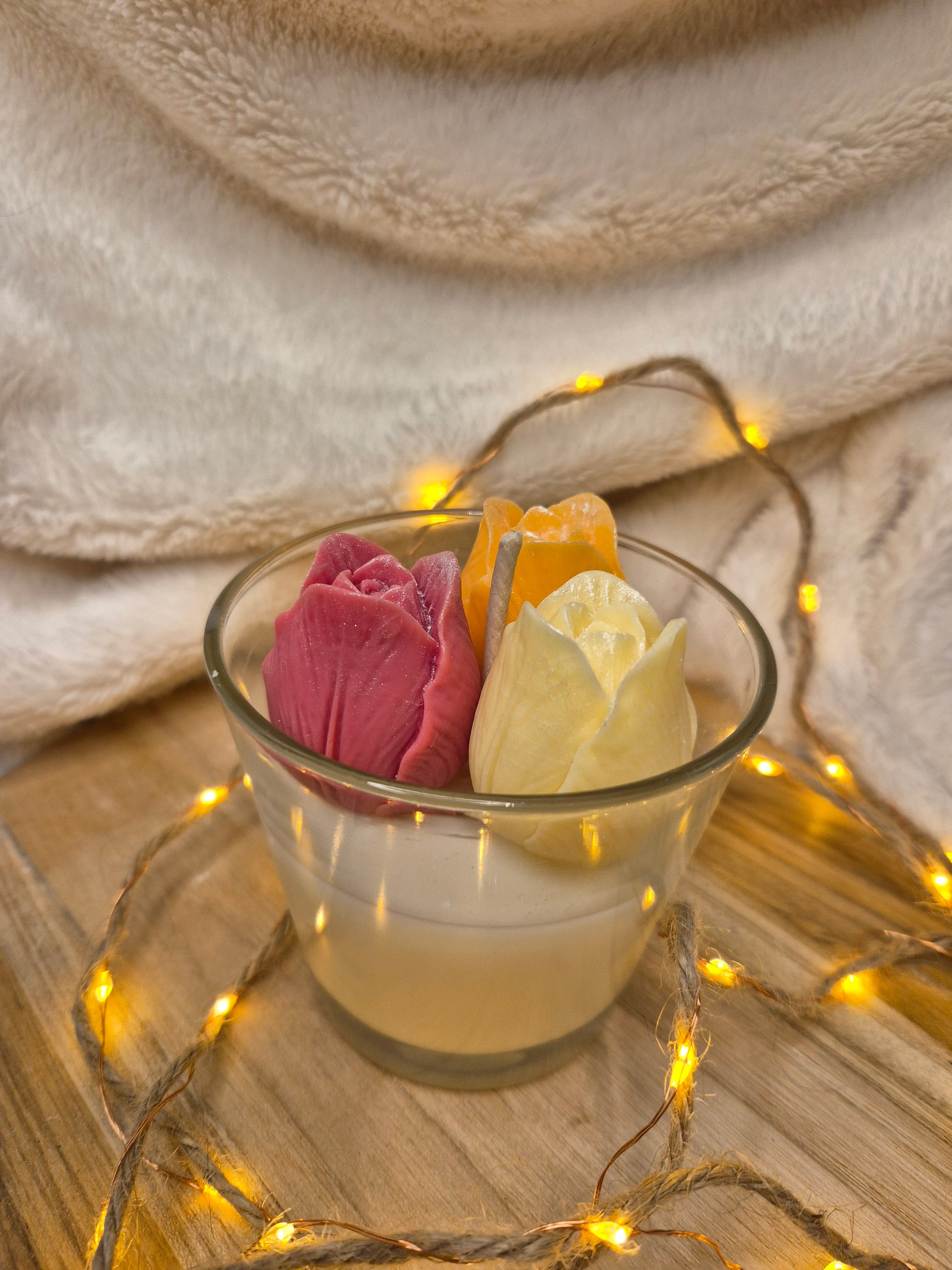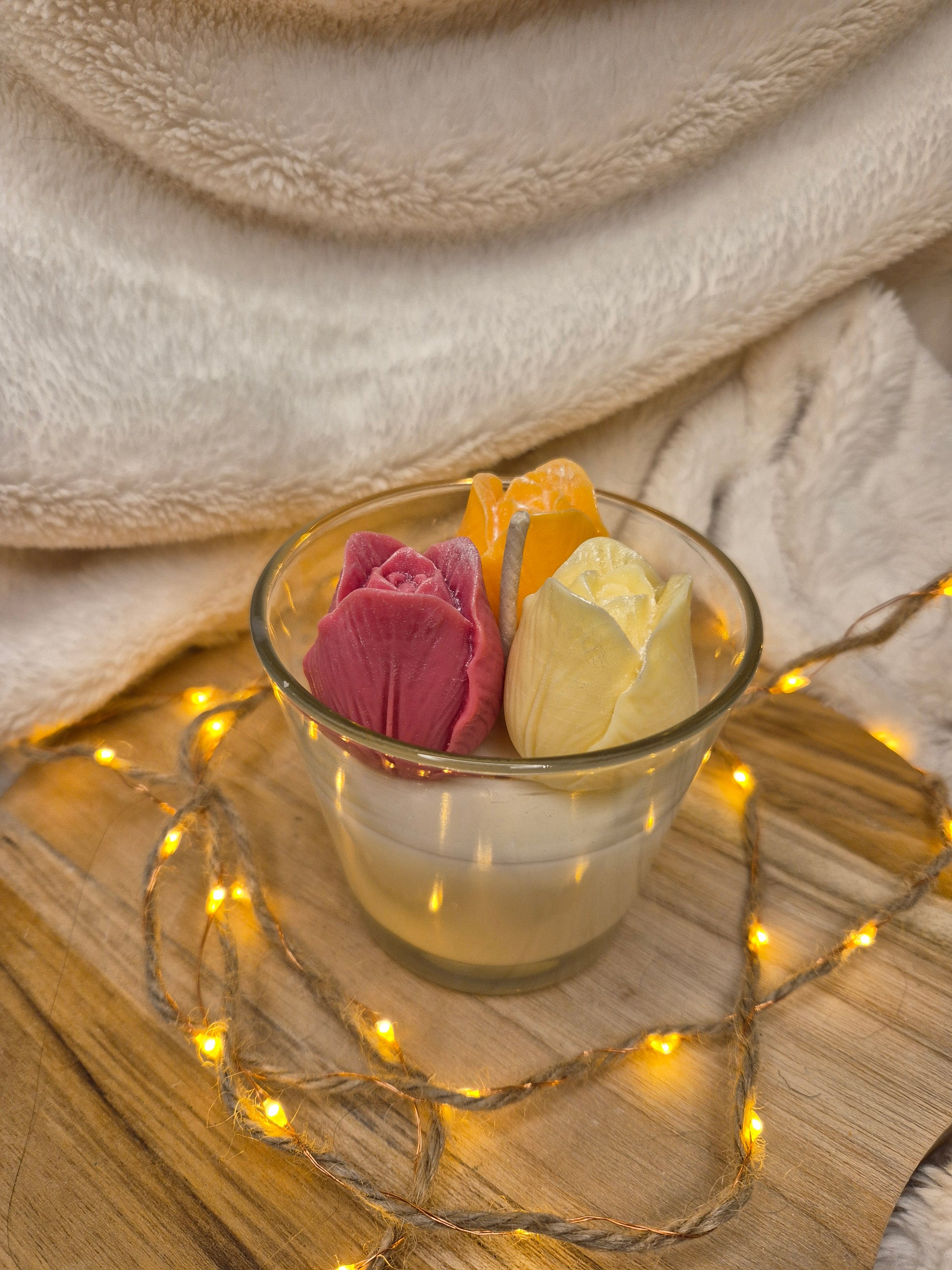 Unsere liebevoll handgegossenen Blumenkerzen vereinen natürliche Harmonie mit zarter Farbvielfalt.
